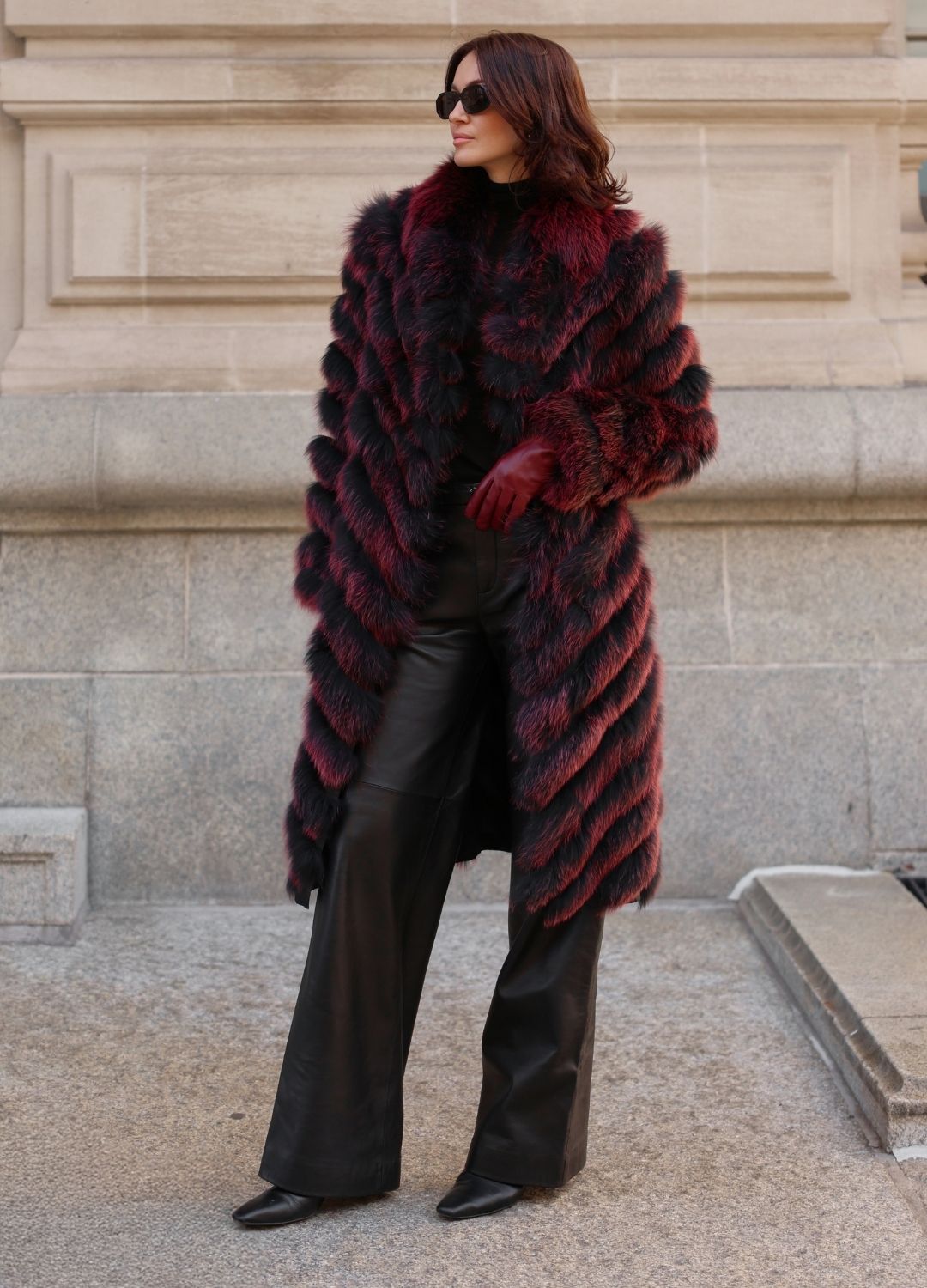 Silk Reversible Long Fur Coat
