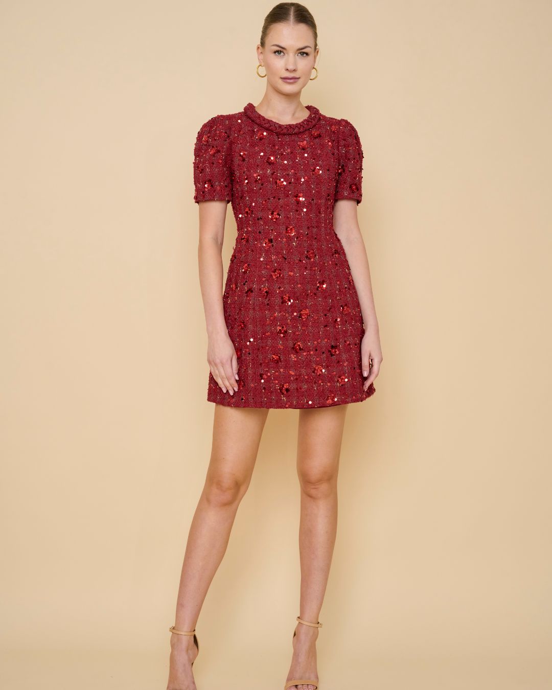 Cherry Tweed Shift Dress