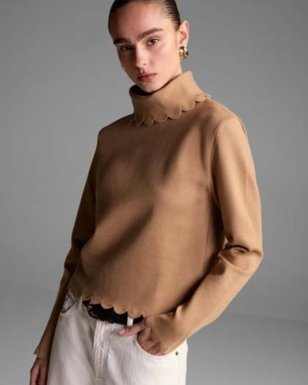 Scalloped Roll Neck Sweater