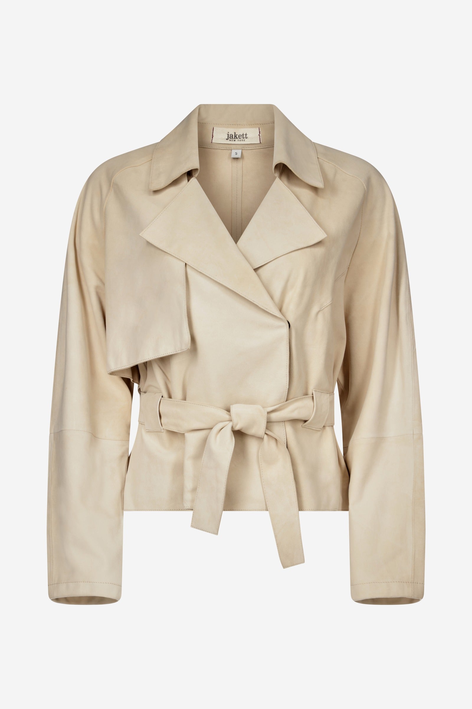 Crafted from luxuriously soft washed suede, the Gemma combines effortless elegance with practical versatility. This cropped raglan silhouette features dropped shoulders and three-quarter sleeves for a contemporary, relaxed fit that flatters multiple body types. The included belt allows you to define your waist and customize the silhouette to suit your preference.