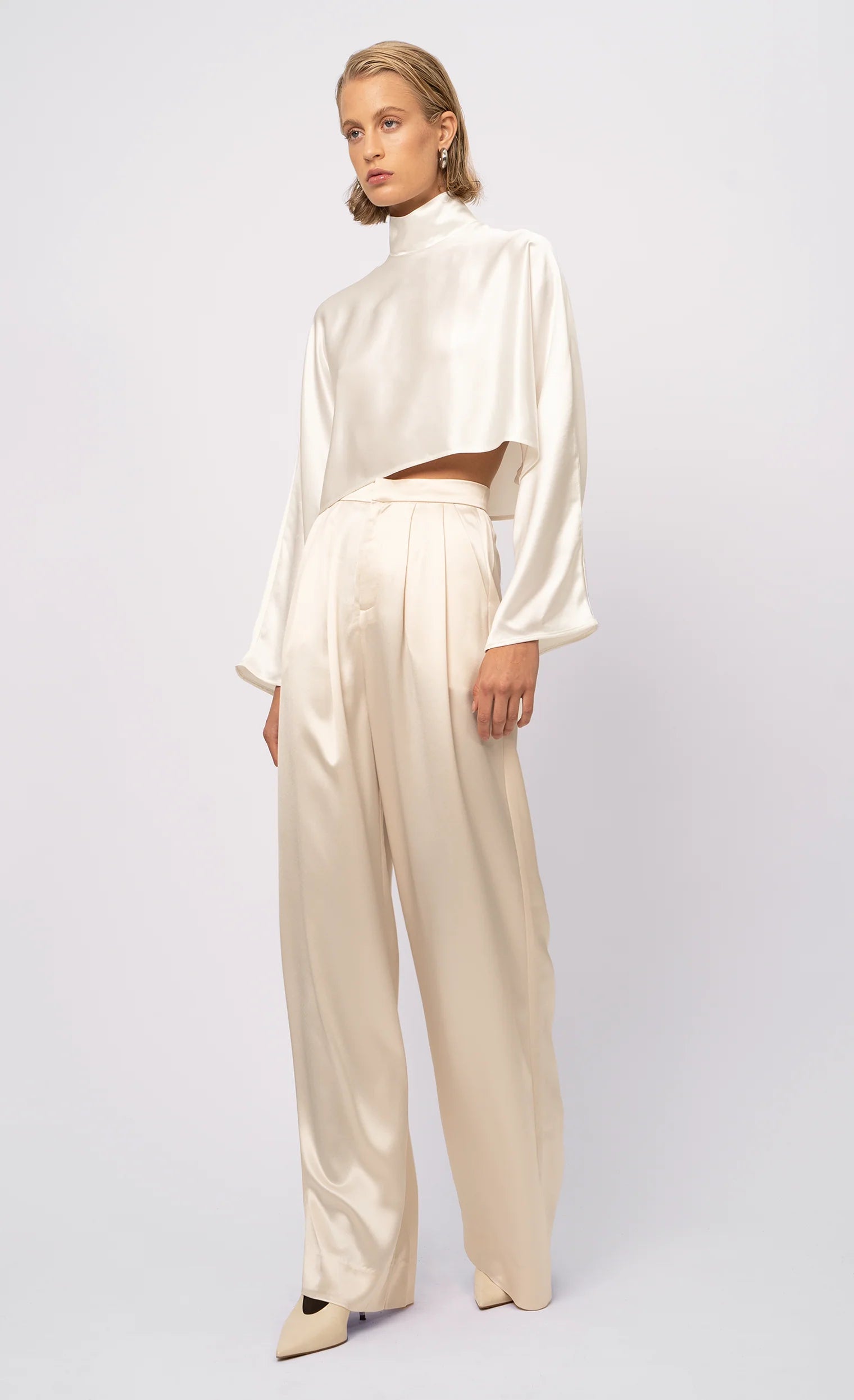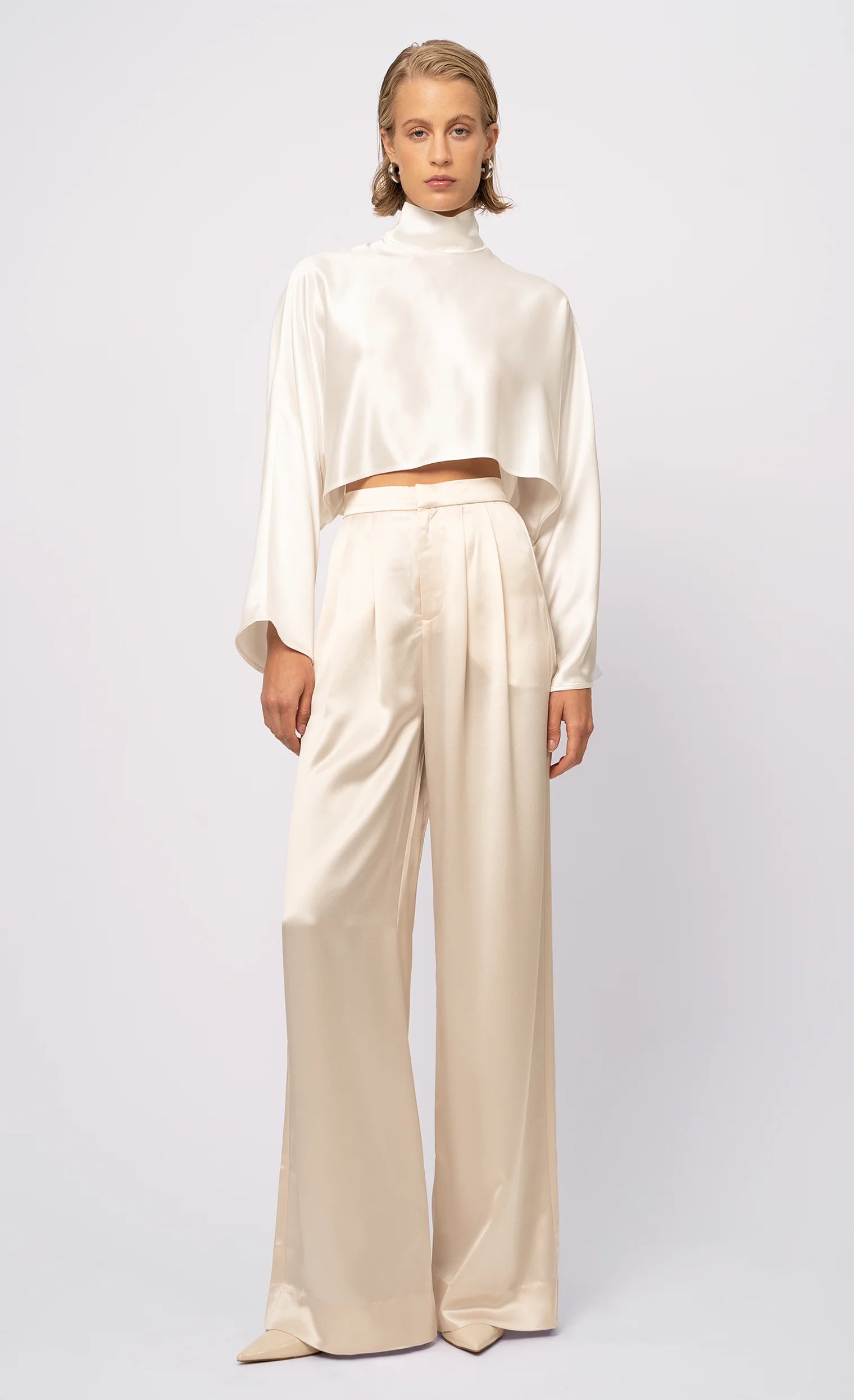 Our Paris Pant is a high-waisted, wide-leg pant made from 100% polyester. Simple, yet elegant the silky look elevates the overall appearance of the pant. The small touches such as pleats and the front zipper closure make them all the more unique.